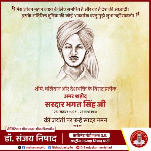 अमर शहीद भगत सिंह जी की जयंती पर शत-शत नमन।