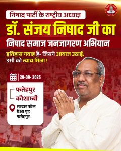 “समाज संगठित होगा, तभी दुनिया झुकेगी” इस प्रेरक ध्येयवाक्य के साथ निषाद समाज को एकता, सम्मान और अधिकारों की दिशा में जागरूक करने हेतु “निषाद समाज जन जागरण अभियान” का भव्य आयोजन किया जा रहा है।